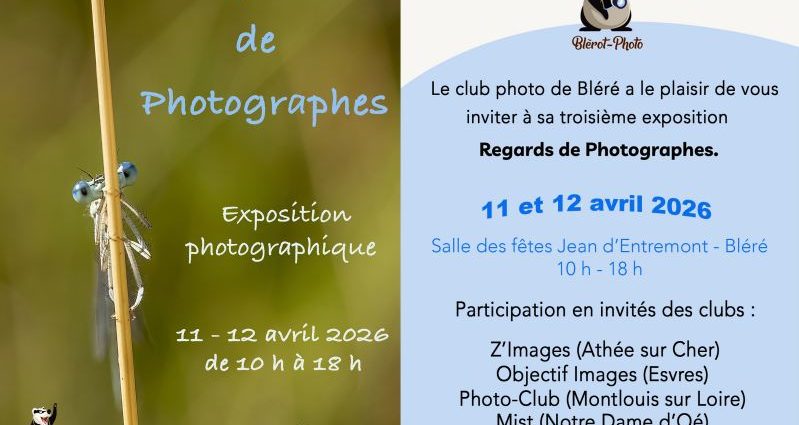 Le club photo de Bléré a le plaisir de vous inviter à sa 3ème exposition “Regards de photographes” les 11 et 12 avril 2026 Salle des fêtes Jean d’Entremont – Bléré – 10h à 18hLire la suite…